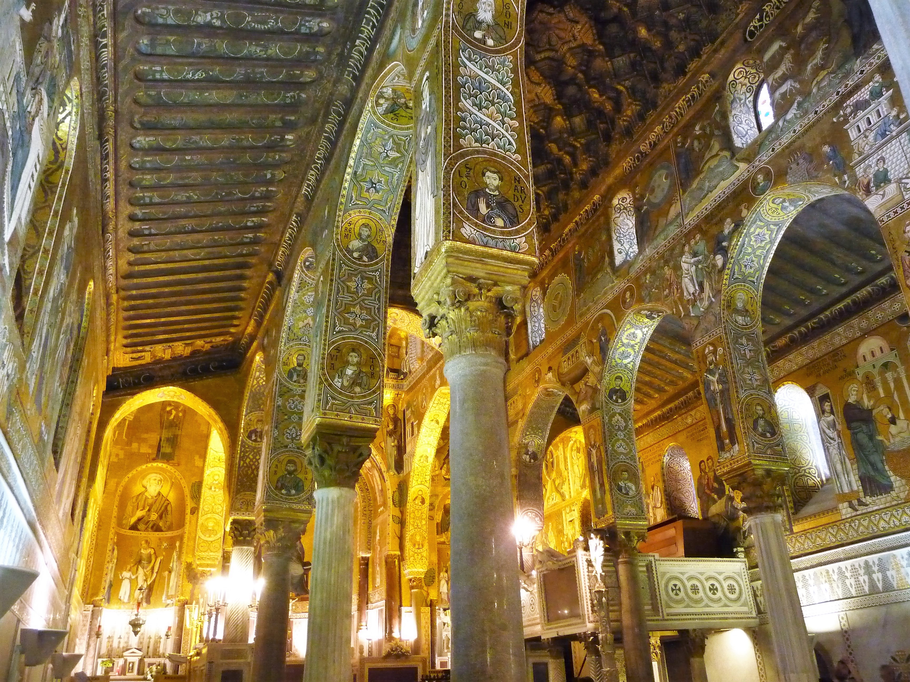 The Cappella Palatina is the most visited attraction in Palermo. It’s a spectacular chapel built in 1130. Precious stones and mosaics line the walls and marble covers the floor. The ceiling is a nod to Islam with its stalactite type motifs.