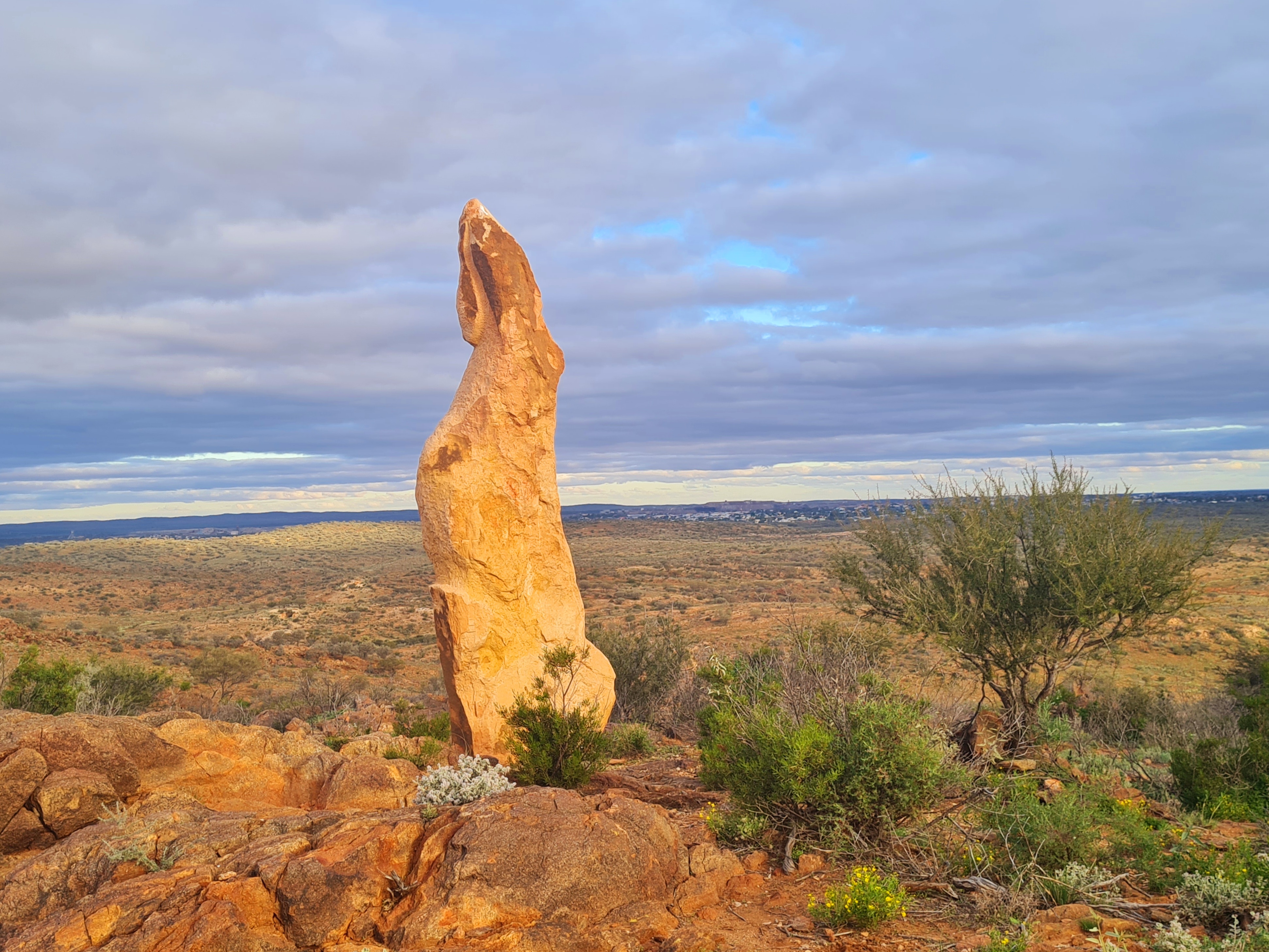 Just before sunset one evening, we set off, bottle of good red in hand to Living Desert Sculpture Park. Created by a group of artists in 1993, the 12 sandstone sculptures high on a hill make the perfect place to soak up outback panoramic views.