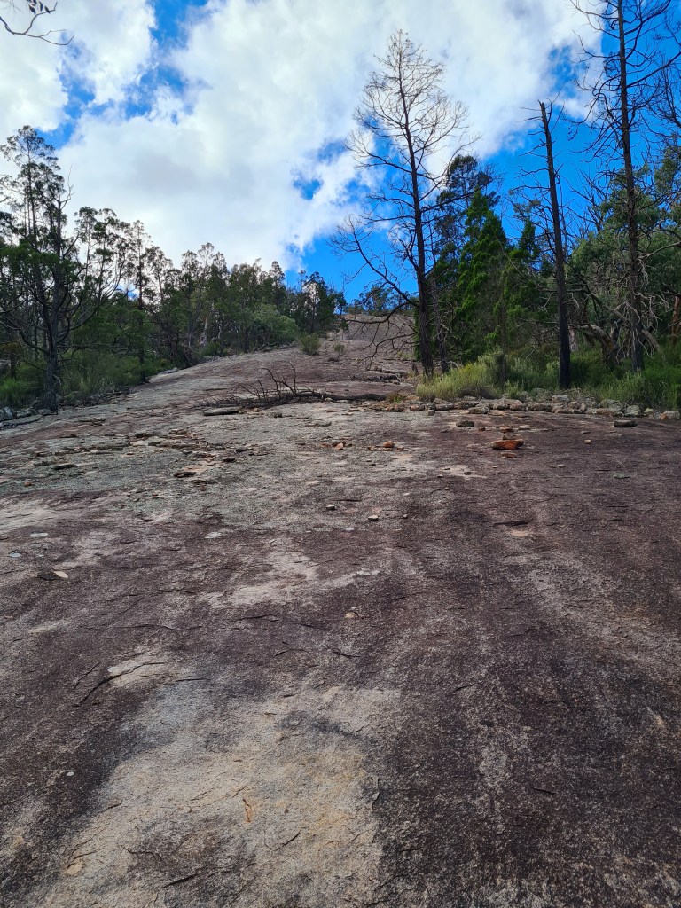 Baulked at the last sheer vertical 50m of the 700m climb to the top of Mt Ferguson. Lily livered I am.